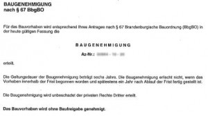 Gestern war ein Postschein im Briefkasten, dass ein Einschreiben eigenhändig abzuholen sei. Was wir dann heute in Empfang nahmen, war die Baugenehmigung der Unteren Bauaufsichtsbehörde des Landkreises. Also wieder einen Schritt geschafft.