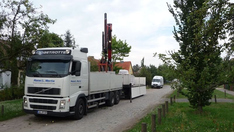 Nach Erteilung der Baufreigabe startete der Bau mit den Erdarbeiten für den Keller. Im Vorfeld mussten wir noch befürchten, den ganzen Erdaushub nicht bei uns unterbringen zu können. Letztlich hat es dann aber doch geklappt: ein paar LKW-Ladungen wurden auf andere Baustellen von Schilf & Bölck verteilt. Und nach Rücksprache mit unseren Nachbarn konnten wir auch etwas über die Grundstücksgrenze hinaus lagern. Dafür ist jetzt aber nahezu keine freie Fläche mehr vorhanden.