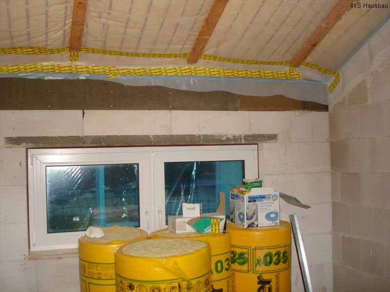 Nächste Woche kommt dann die Lüftung, die ebenfalls quer durch das Haus verlegt wird. Obendrauf liegt dann nochmal Dämmung, bevor der Estrich kommt. Wir hoffen, das in der kommenden Woche etwas an Tempo zugelegt wird, um die Arbeiten in dieser Woche abzuschließen. Im HWR haben wir am Samstag die Wände, wo noch Leitungen entlang gelegt bzw. Heizungs- und Lüftungsgerät montiert werden, weiß gestrichen. Später kommt man hier ja schlecht dran.