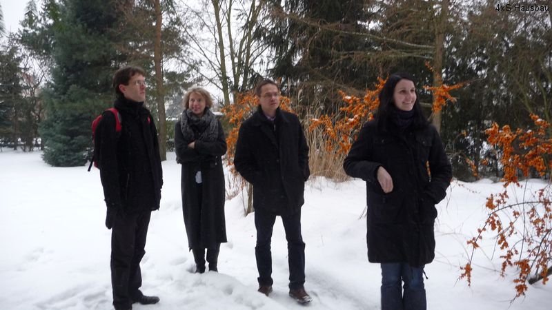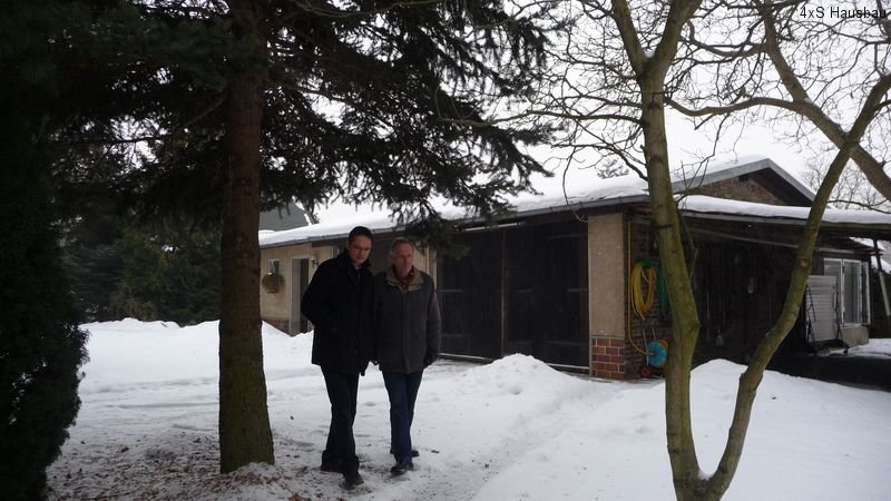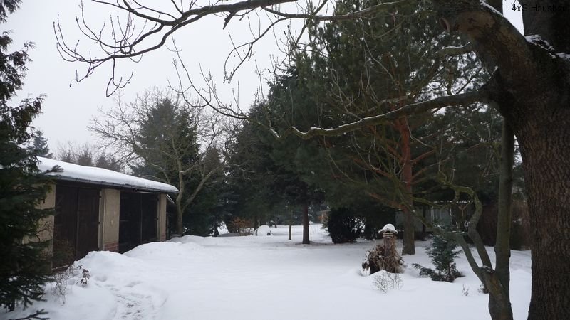 Zuvor haben wir uns heute nachmittag mit Herrn Schilf und Frau Bölck auf unserem Grundstück getroffen, damit beide sich ein Bild vor Ort machen können. Es ist vor Baubeginn noch viel zu tun (Teich, Garage, Bäume,…). Es ist aber auch schön zu sehen, wie der jetzige Bestand unter einer dicken Schneedecke aussieht.